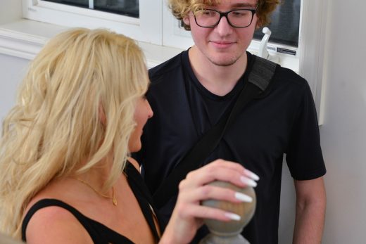 Blond bbw Devin Taylor takes off tight jeans to play with her shaved pussy