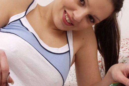Blonde cutie Elle M exposes her tiny tits and poses in hot black stockings