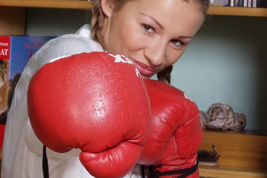 Blonde Hungarian Zazie Skymm plays with her shved pussy in a bedroom solo