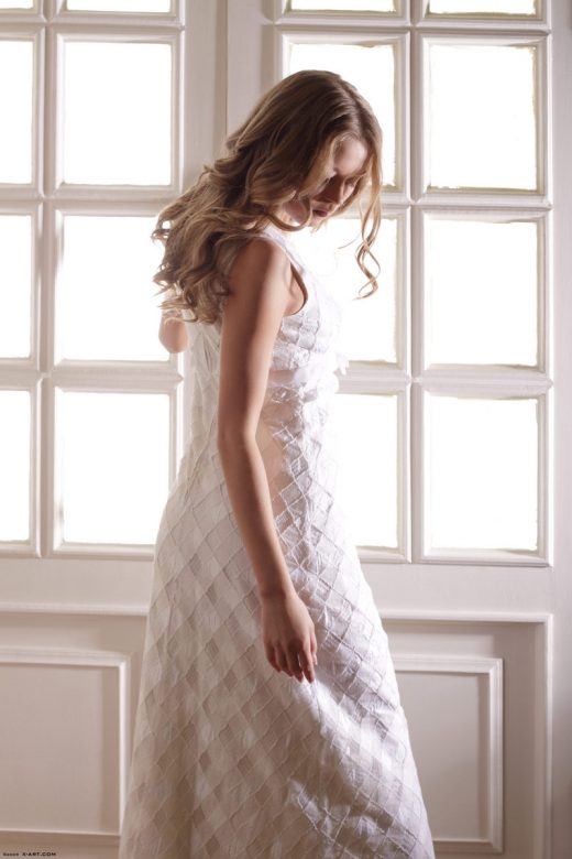 Solo model Abigail Mac uncovers her big boobs as she peels off her onesie